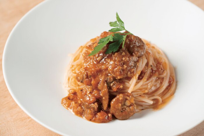 当日はケアリングフード第一人者である藤春幸治シェフが登場し、米粉麺を使った 和洋それぞれの味わいを提供し、じっくり煮込んだトマトの旨味を生かした洋風のミートソースと、繊細な出汁の風味が広がる和風の冷製仕立て。アレルギーや健康制限がある方も、そうでない方も一緒に楽しめる2つのメニューをご用意しました。